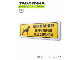 Табличка "Внимание Территория под охраной", на дверь и стену, информационная, пластиковая с двусторонним скотчем, 30х10 см, Айдентика Технолоджи 4609686959