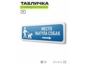 Табличка "Место выгула собак, стрелка вправо", на дверь и стену, информационная, пластиковая с двусторонним скотчем, 30х10 см, Айдентика Технолоджи 4609689412