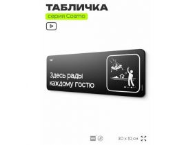Табличка Здесь рады каждому гостю, шуточная прикольная табличка на дверь и стену черная, для офиса и дома, серия COSMO FUN, 30х10 см, Айдентика Технолоджи 103738506211