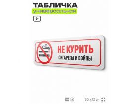 Табличка "Не курить сигареты и вейпы", на дверь и стену, информационная, пластиковая с двусторонним скотчем, 30х10 см, Айдентика Технолоджи 4609679235