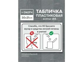 Табличка в туалет / "Не бросайте мусор в унитаз" - А4, 30х21 см, 1 шт (со скотчем, ламинированное изображение) Правильная Реклама 4425990283