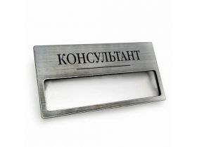 Бейджик (Бейдж) с окном, гравировка "Консультант", магнитное крепление, серебряный - 5 шт. 103117904962