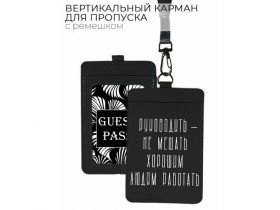 Чехол (бейдж) для пропуска и карт на ленте с принтом "Управлять - не мешать другим работать" черный 103492487509
