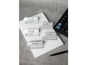 Бейджик (Бейдж) с окном, гравировка "Кассир", магнитное крепление, серебряный - 5 шт. 103117904955