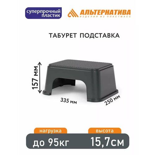 Подставка-табурет выполнена из пластика и резины, а потому она долговечная и безопасная.
