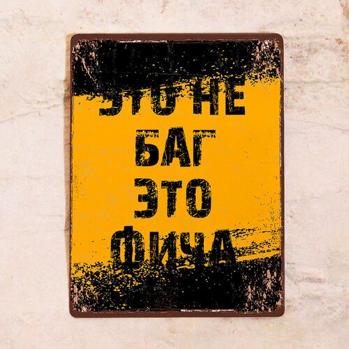 Найти - Прикольная табличка Это не баг, это Фича, для декора офиса, дома, рабочего места программиста, айтишника, металл, 20х30 см.