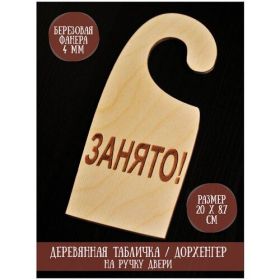 - Табличка-дорхенгер изготовлена из высококачественной березовой фанеры, толщиной 4 мм. Размер таблички 20 х 8.7 см.