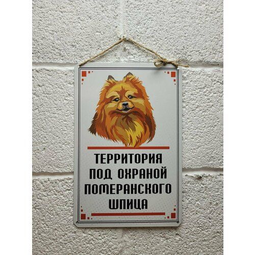 Найти - Территория под охраной померанского шпица, табличка металлическая 20 на 30 см, шнур-подвес в подарок