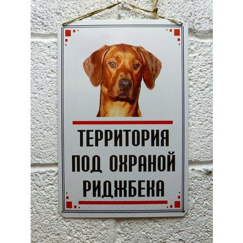 Найти - Территория под охраной риджбека. Табличка металлическая, картина на жести, декор интерьера, плакат, постер, подарок