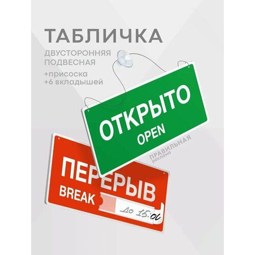 Табличка "Открыто-перерыв" от "Правильная Реклама" - это двусторонняя информационная табличка, которая станет незаменимым помощником для любого заведения.