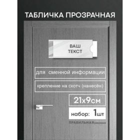 Выбирая табличку на дверь со сменной информацией от "Правильная Реклама", вы получаете стильный и функциональный аксессуар для вашего офиса, который поможет поддерживать порядок и быстро информировать ваших посетителей.