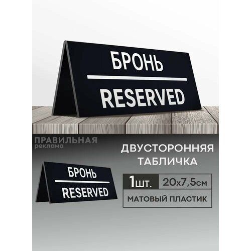 Найти - Табличка настольная Забронировано / Зарезервировано / Reserved 1 шт. 20х7,5 см. (двусторонняя) - Правильная реклама