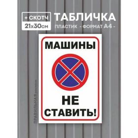 Найти - Табличка Машины не ставить А4 (пластик 3 мм.) + скотч /Машины не парковать