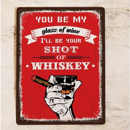Найти - Табличка Стакан виски для декора бара на стену, прикольный подарок мужчине на новый год, металл, 20х30см.
