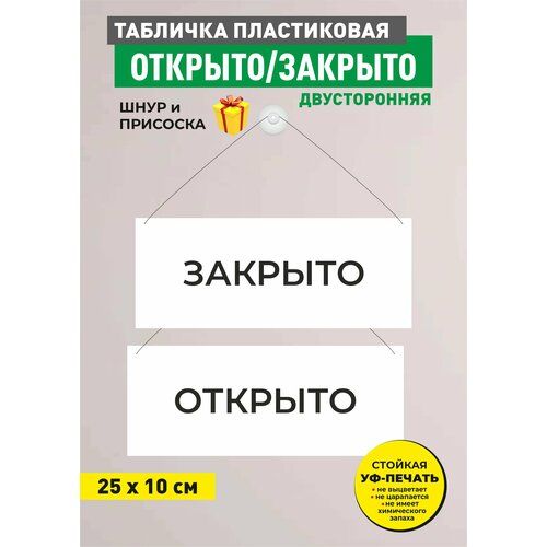 Информационная двусторонняя табличка Открыто-закрыто - неотъемлемая часть внешнего оформления любого заведения, будь то сфера обслуживания, такая как ресторан, кафе, салон красоты или предприятие торговли. Используется как средство оповещения о текущем статусе. Размер - 10х25 см. Благодаря ярким насыщенным цветам табличка будет хорошо заметна. Табличке не страшны погодные условия, она устойчива к внешним факторам, выгоранию на солнце, непогоде, перепаду температур, влагозащитна, не царапается, не имеет химического запаха. В подарок мы прилагаем силиконовую присоску и шнур, позволяющие без труда смонтировать и при необходимости демонтировать табличку Открыто-закрыто. Табличка станет прекрасным подарком на новоселье, День Рождения, Новый Год, да и просто без повода Друзья, родственники, коллеги, руководитель оценят ваш подарок, который прослужит долгие годы.