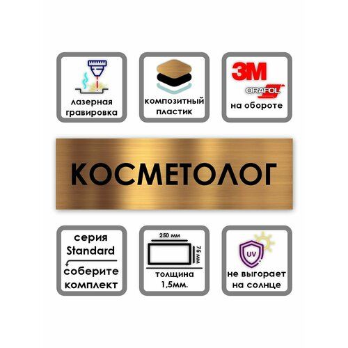 Найти - Косметолог табличка на дверь Standard 250*75*1,5 мм. Золото