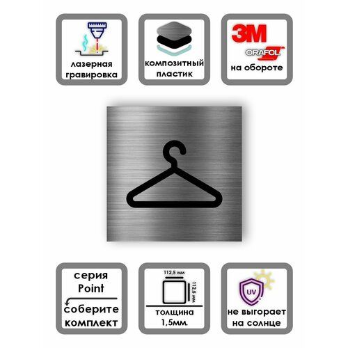 Найти - Раздевалка, Гардероб, Вешалка табличка Point 112*112*1,5 мм. Серебро