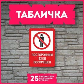 Найти - Табличка KRASNIKOVA Посторонним вход запрещен, 20x25 см, белая, ПВХ, влагостойкая