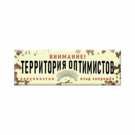 Использование информационной таблички "Территория оптимистов" поможет создать позитивную атмосферу в вашем пространстве, поднимет настроение и мотивирует на новые достижения.