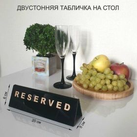 Найти - Табличка на стол резерв/RESERVED двухсторонняя. Подставка угловая на стол для кафе, ресторанов.