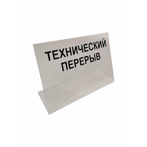 - Настольная табличка "Технический перерыв" формата А5 ( 210х148мм) выполнена из прозрачного органического стекла, толщиной 1,5мм. Устойчива к выцветанию благодаря нанесению информации методом аппликации: пленка Oracal прикатана на пластиковую поверхность.