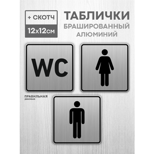 Найти - Комплект алюминиевых табличек на туалет со скотчем, 12х12 см. 3 шт. / Табличка туалет, WC
