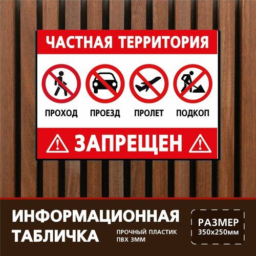 Найти - Табличка 35х25 см. на пластиковой основе Частная территория красный