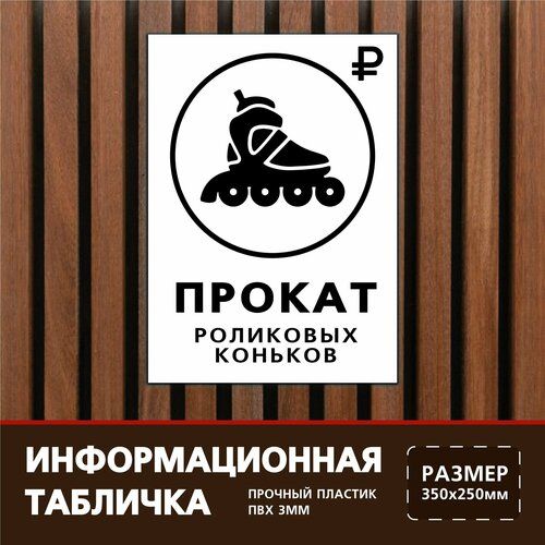 Табличка знак Прокат роликов. Таблички сделаны из качественного пластика ПВХ, табличка яркая, прочная, плотная, твердая. Подходит для размещении на плоских поверхностях для уличного применения, устойчива к влаги и перепадам температур. Крепится табличка на дверь, забор, калитку, стену на саморезы, двухсторонний скотч или жидкие гвозди в зависимости от того что у вас есть (крепления в комплект не входят, кроме двухстороннего скотча). Табличка сделана из пластика. Если монтаж к гладкой поверхности, то подойдет вспененный скотч. Если поверхность шероховатая (дерево, штукатурка и тп.) то на саморезы от 2 до 4 шт, отступите около 1 см от края.