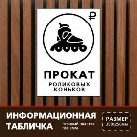 Найти - Табличка 35х25 см. на пластиковой основе Прокат роликов белая