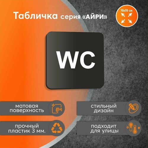 Табличка информационная значок указатель туалет. Информационная табличка на дверь это универсальное и стильное решение по оформлению помещения. Табличка на стену выполнена из черного пластика и крепится с помощью двустороннего скотча, который уже нанесен на пластиковую табличку. Размер таблички 10х10 см. Используется пленка белого цвета. Навигационные таблички черного цвета будут выглядеть стильно в любом интерьере. Таблички на стену, дверь, для офиса, торгового центра, кафе, ресторана, школы, фитнес-клуба, бассейна, офиса продаж, бара, здания, театра, кинотеатра, музея, оформления помещения, гаража. Мы предлагает обширный перечень навигационных указателей на ваш выбор.