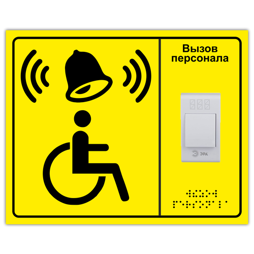 Найти - Табличка с дистанционным звонком со шрифтом Брайля и кнопкой вызова персонала 25х20 см