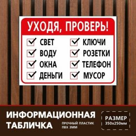 Найти - Табличка 35х25 см. на пластиковой основе Уходя проверь