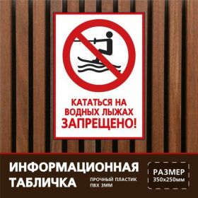Найти - Табличка 35х25 см. на пластиковой основе Кататься на водных лыжах запрещено