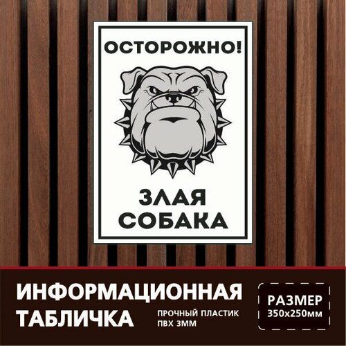 Табличка выполнена из высококачественного пластика, что гарантирует её долговечность и стойкость к различным погодным условиям. Надпись "Осторожно злая собака" нанесена четким и легко читаемым шрифтом, что обеспечивает максимальную видимость и эффективность предупреждения.