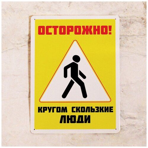 Найти - Офисная табличка Скользкие люди, приколы в офис на стену, металл, 20х30 см.