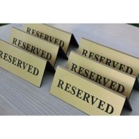 Настольная пластиковая табличка с надписью "Reserved" с двух сторон. Размер одной таблички без упаковки: 120х45х45 мм.