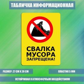 Информационная табличка из пластика толщиной 5 мм размером 27 см х 20 см имеет следующие характеристики: