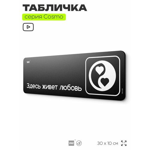 Найти - Табличка Здесь живет любовь, шуточная прикольная табличка на дверь и стену черная, для офиса и дома, серия COSMO FUN, 30х10 см, Айдентика Технолоджи