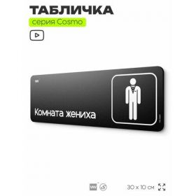 Найти - Табличка Комната жениха, шуточная прикольная табличка на дверь и стену черная, для офиса и дома, серия COSMO FUN, 30х10 см, Айдентика Технолоджи