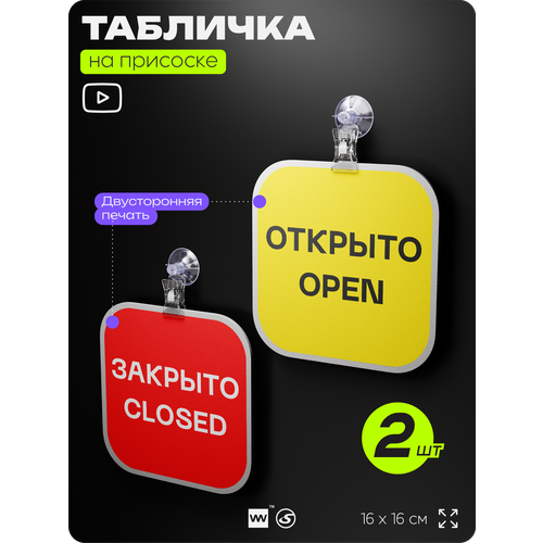Найти - Таблички Открыто Закрыто, для магазина на дверь, двустороняя табличка на присоске, 16х16 см, 2 шт, Айдентика Технолоджи