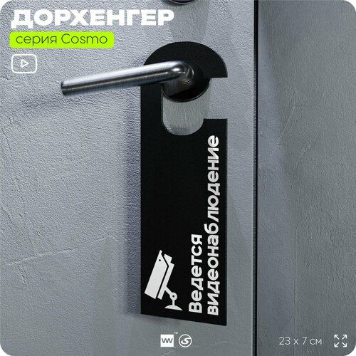 Найти - Дорхенгер Ведется видеонаблюдение, табличка на ручку двери, черный, пластиковая, серия COSMO, Айдентика Технолоджи