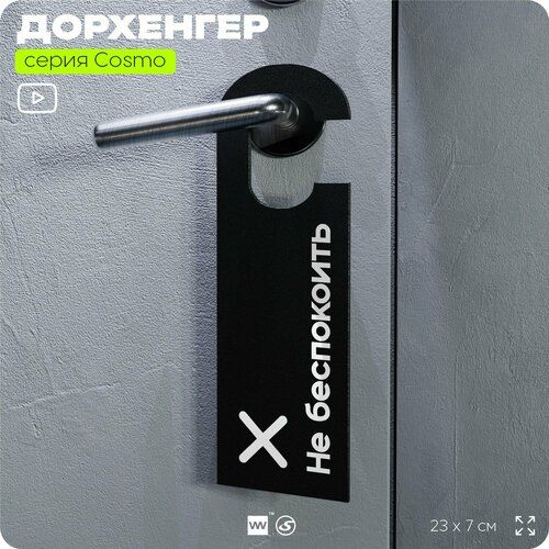Дорхенгер Не входить на дверь серии COSMO от Айдентика Технолоджи. Черный пластиковый дорхенгер на ручку двери выполнен из качественного материала в минималистичном дизайне. Дорхенгер Не беспокоить это информационная табличка на дверь, которую размещают на дверной ручке информируя о необходимости не входить в данный момент в кабинет, комнату отеля. Табличка на дверь дорхенгер это универсальное решение которое подойдет для офиса, переговорной, отеля, коворкинга, конференц-зала, туалета, аудитории во время проведения семинаров и занятий. Пластиковую табличку дорхенгер Занято на дверь также можно использовать для дома, чтобы обозначить границы личного пространства и попросить временно не беспокоить.