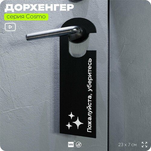 Найти - Дорхенгер Пожалуйста уберитесь, табличка на ручку двери, черный, пластиковая, серия COSMO, Айдентика Технолоджи