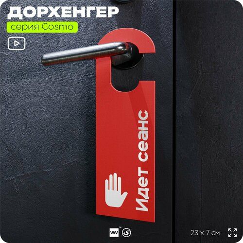 Найти - Дорхенгер Идет сеанс, табличка на ручку двери, красный, пластиковая, серия COSMO, Айдентика Технолоджи