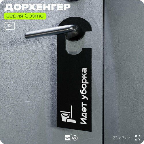 Найти - Дорхенгер Идет уборка, табличка на ручку двери, черный, пластиковая, серия COSMO, Айдентика Технолоджи