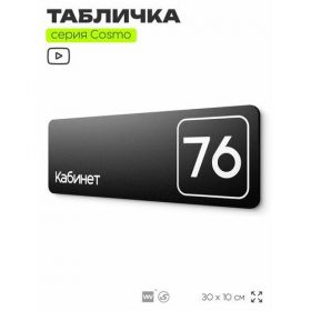 Найти - Табличка с номером кабинета Кабинет №76, для офиса, 30 х 10 см, серия COSMO, черная, Айдентика Технолоджи