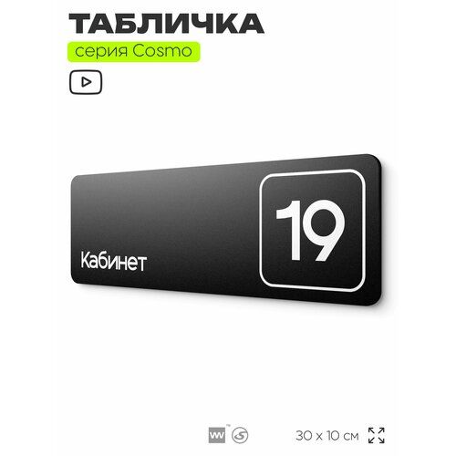 Найти - Таблички с номером кабинета Кабинет №19, для офиса, 30 х 10 см, серия COSMO 3010, черная, Айдентика Технолоджи