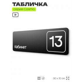 Найти - Таблички с номером кабинета Кабинет №13, для офиса, 30 х 10 см, серия COSMO 3010, черная, Айдентика Технолоджи