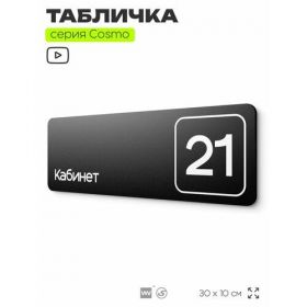 Найти - Таблички с номером кабинета Кабинет №21, для офиса, 30 х 10 см, серия COSMO 3010, черная, Айдентика Технолоджи