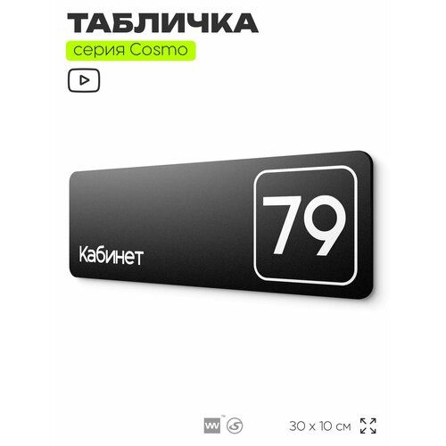 Найти - Табличка с номером кабинета Кабинет №79, для офиса, 30 х 10 см, серия COSMO, черная, Айдентика Технолоджи